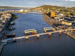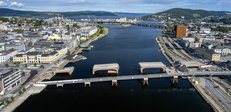 Since October 2025, the elegant white bridge has spanned the Drammen River. It forms a central part of the city axis between the main square and the railway station. The 180-metre-long steel bridge is 19.4 metres wider than before, allowing users to cross it by bus, bicycle or on foot.
